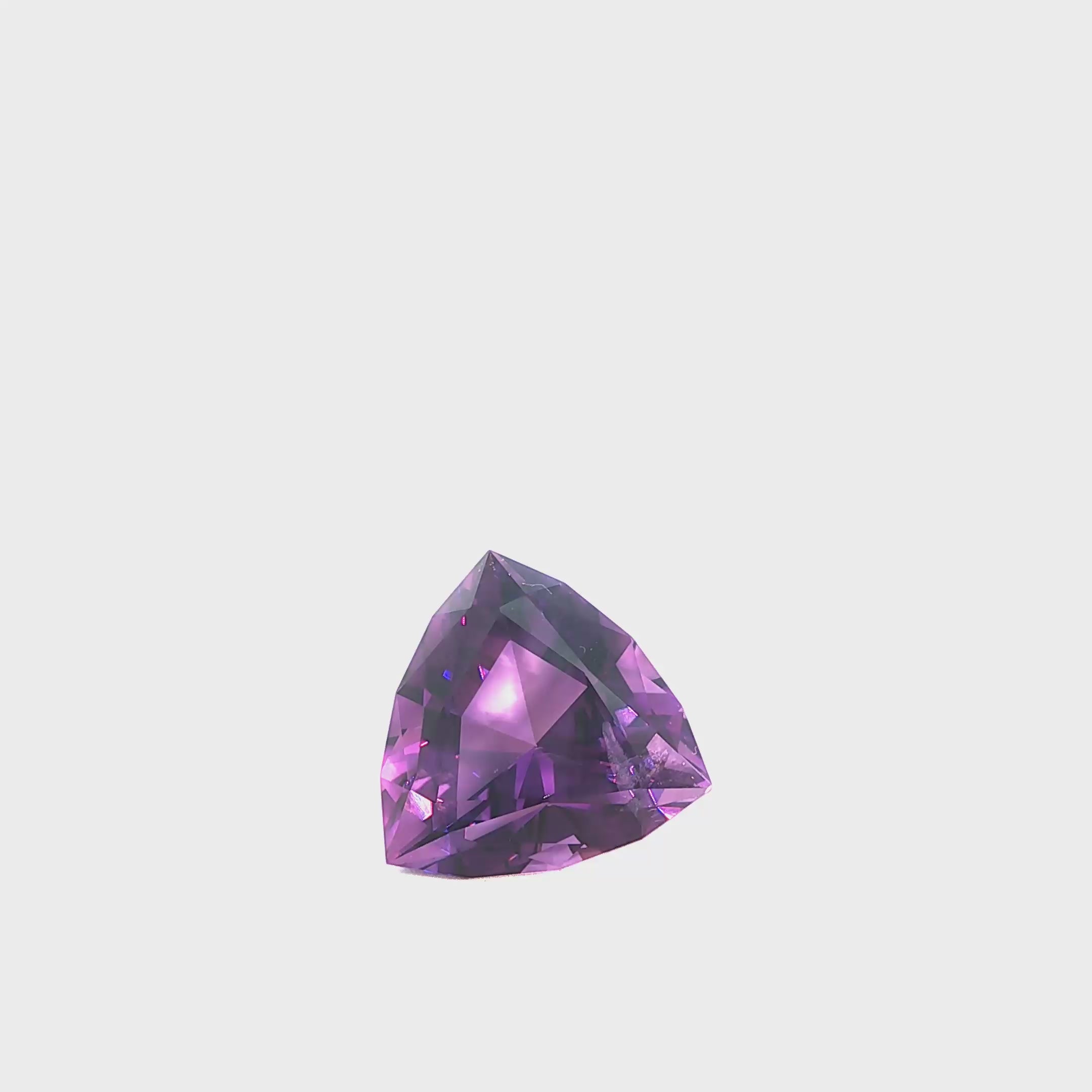 Admire this trillion-cut amethyst, an exquisite choice for a new jewelry creation and for collectors. Its brilliant cut reveals areas of captivating colors, enhancing the richness of its purple hue. An exceptional stone for unique creations.
