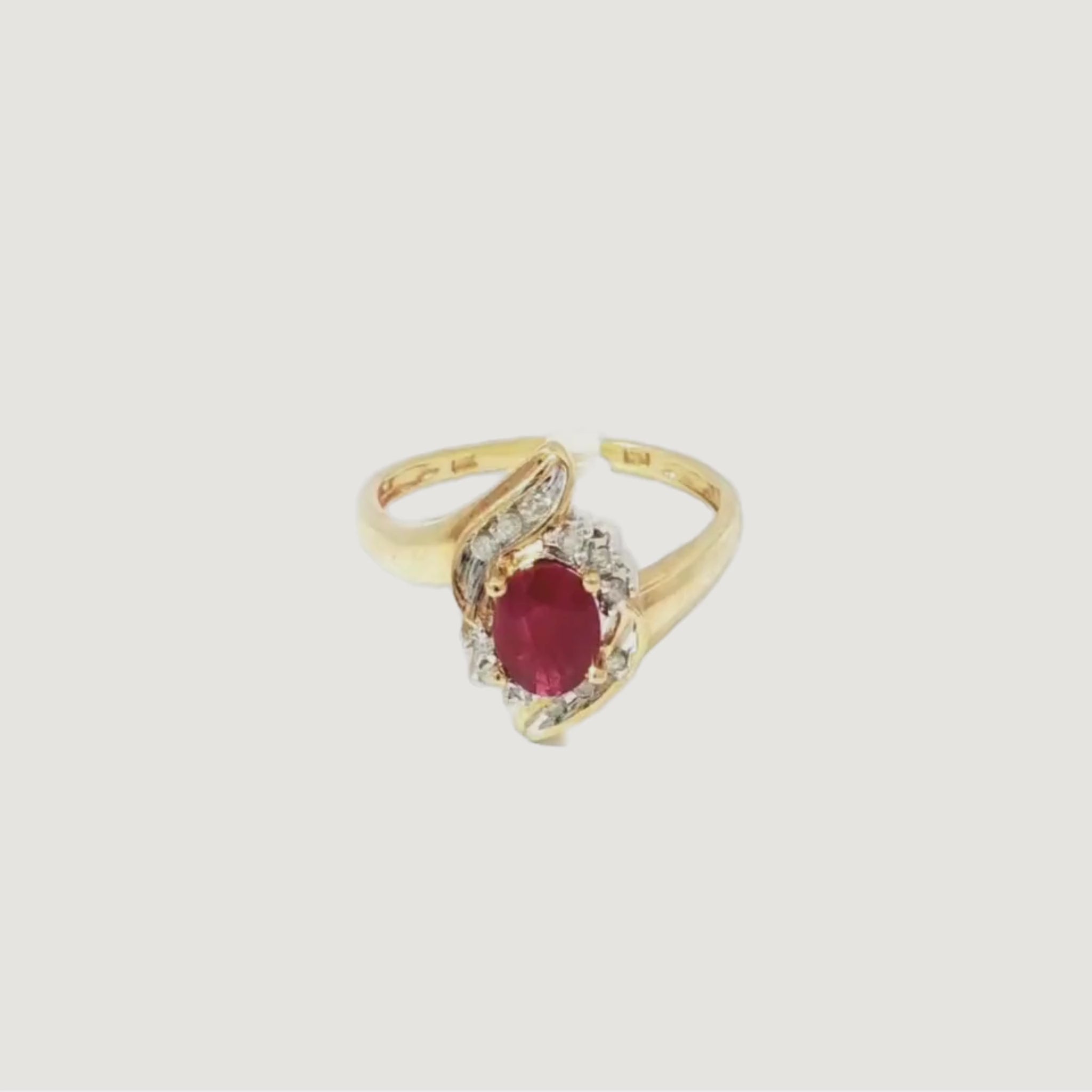 10K Yellow Gold and White Gold Ring with Ruby and Diamond