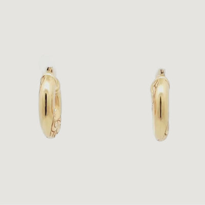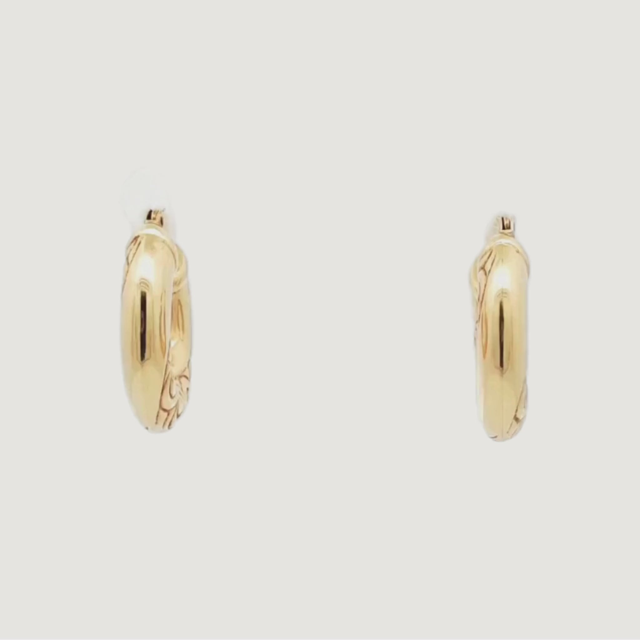 Yellow gold hoop earrings, an expression of discreet luxury. The warm shine of gold is enhanced by delicate engravings, adding a touch of originality, perfect for those who appreciate exceptional craftsmanship and refined details.