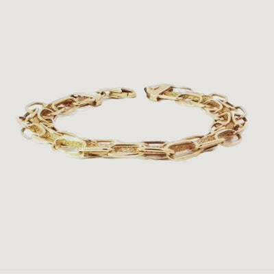 This gold bracelet exudes a warm atmosphere and a bold style. Perfect for enhancing any outfit with a touch of luxury, a valuable addition to any jewelry collection.