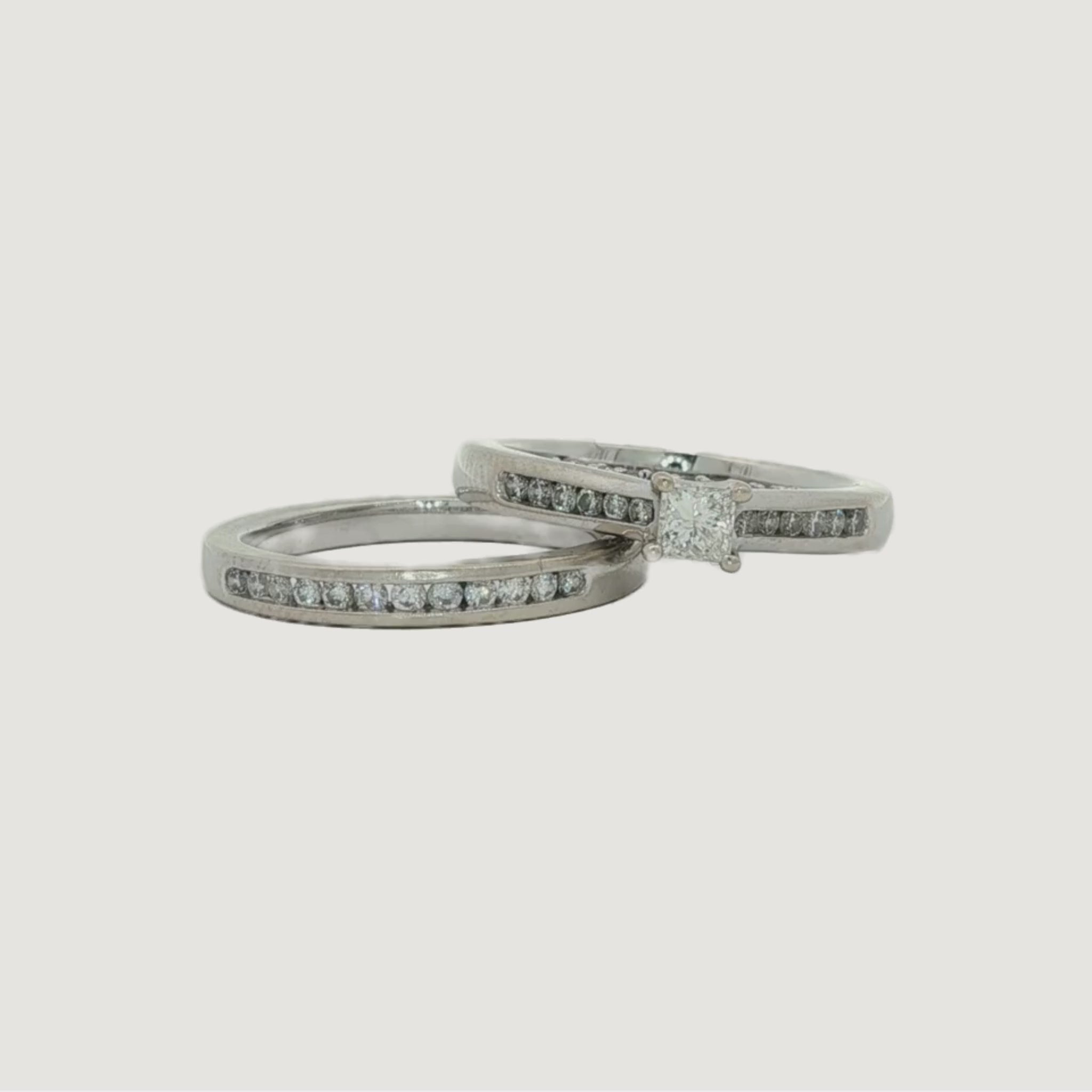 14K White Gold Wedding Ring Set with Diamonds