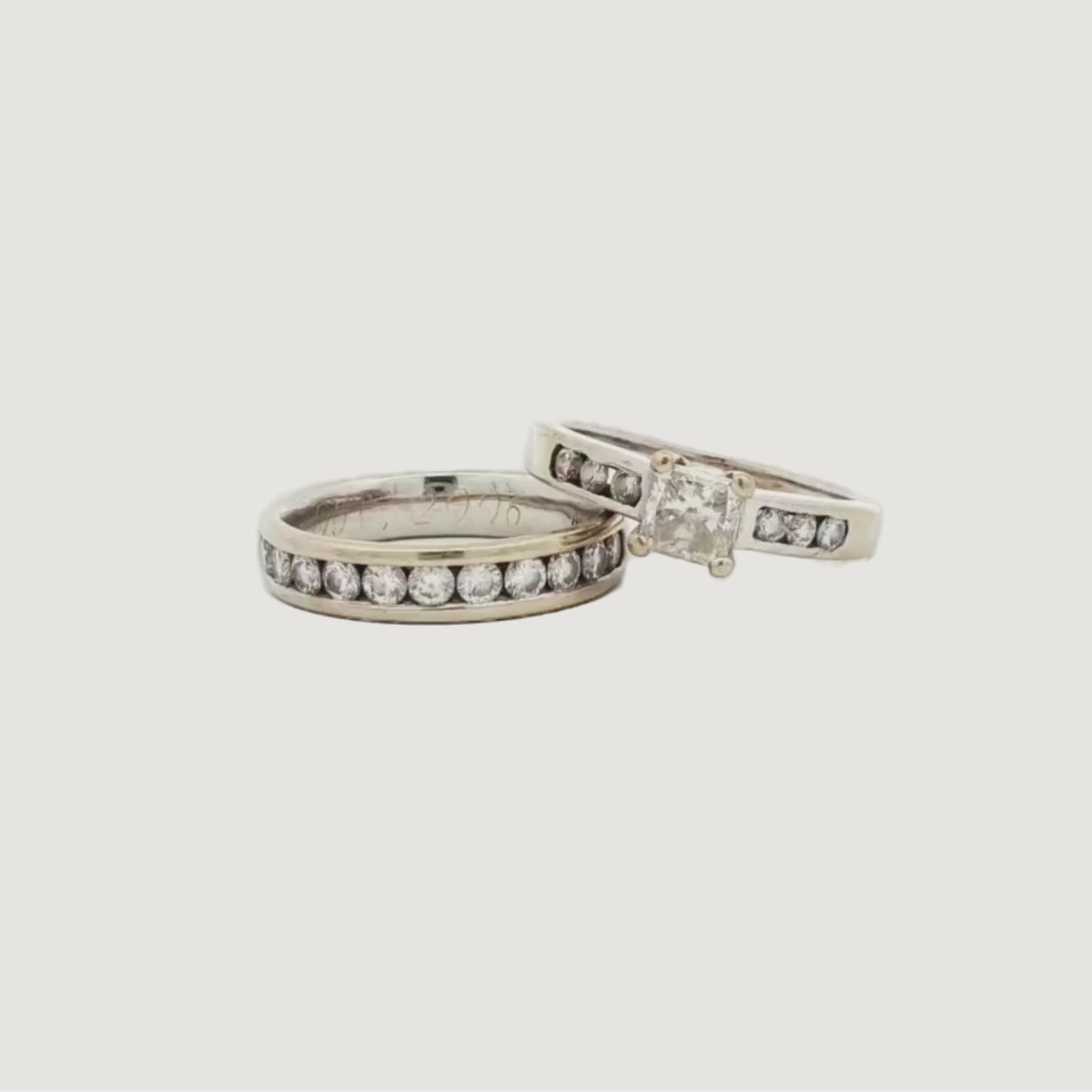 Set of Solitaire and Wedding Band in 18K White Gold with Diamonds