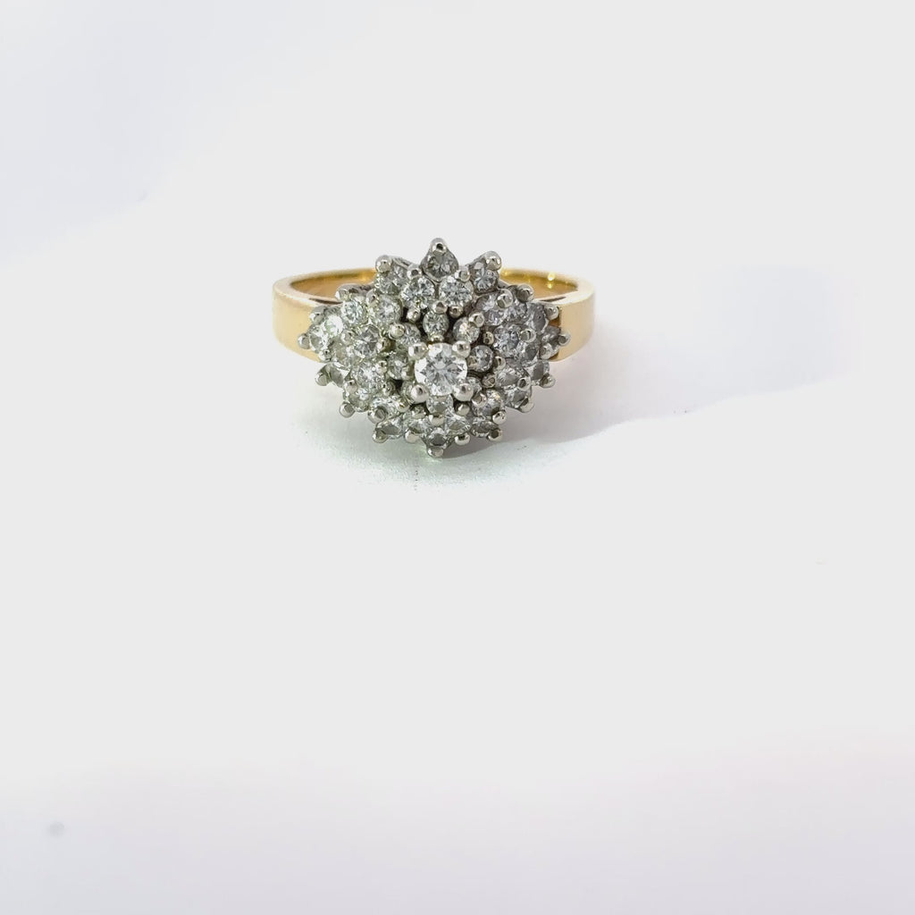 Sublime bague multi-pierres en or jaune, une pièce présente ornée de diamants ronds taille brillant. Cette bague rayonne d'un tel éclat, elle sera un bijou raffiné pour illuminer votre quotidien.