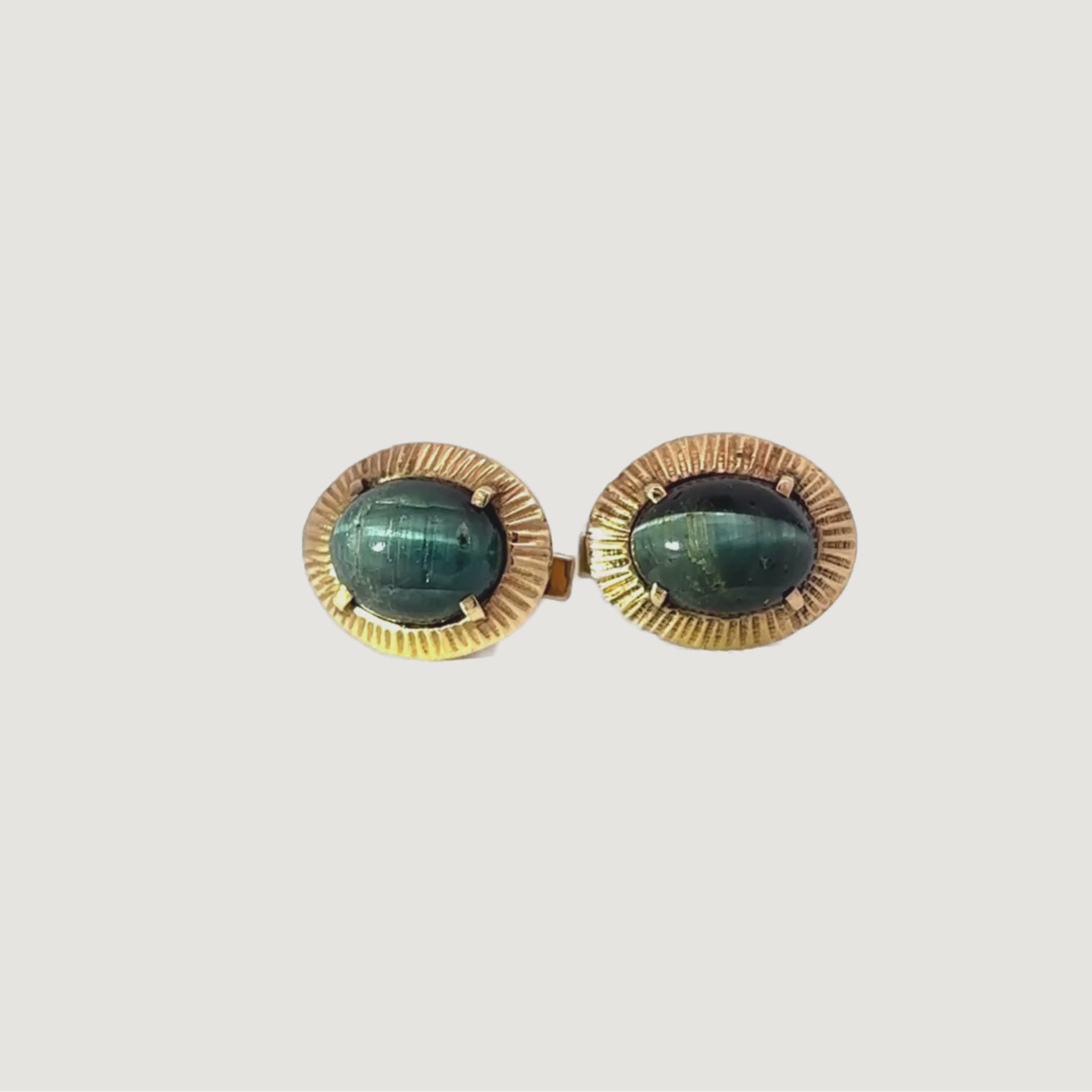 Boutons de manchettes en Or jaune 14K avec tourmalines œil-de-chat
